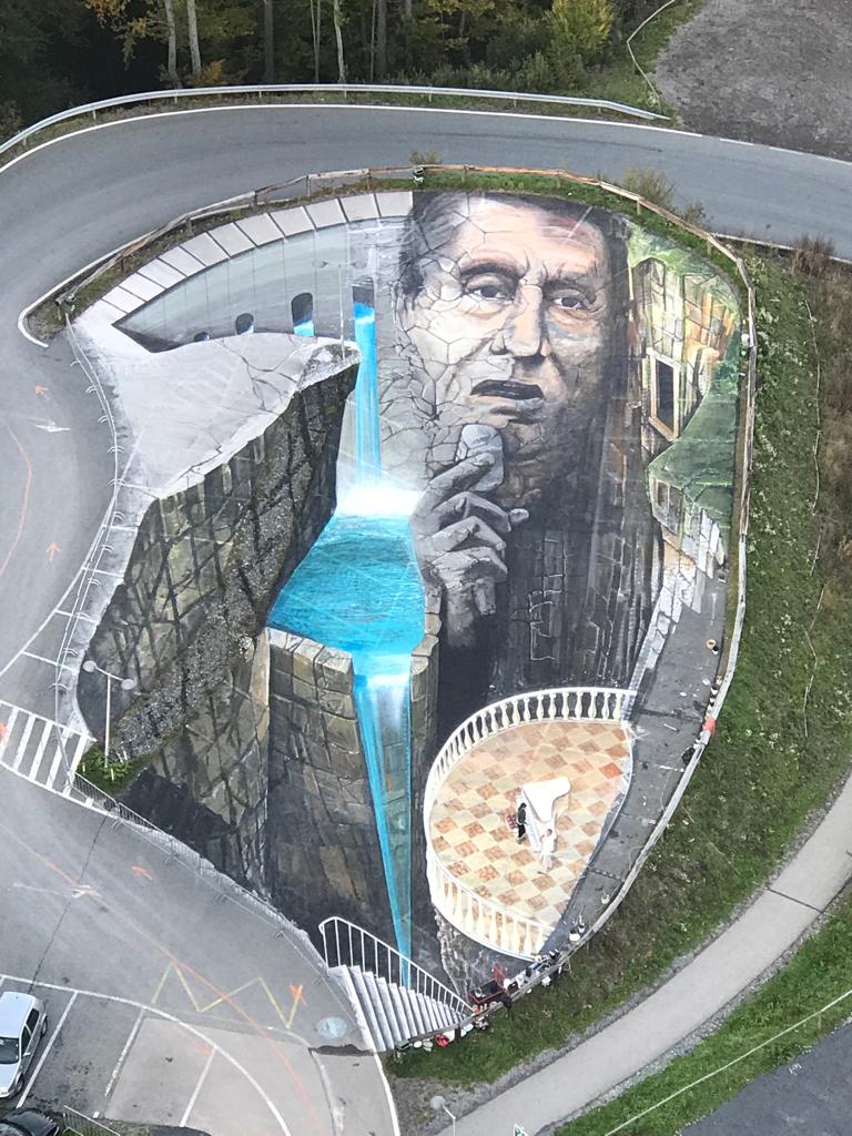 Als Motiv hat sich der Bürgermeister der Stadt Udo Jürgens vorgestellt und dies haben wir umgesetzt. Die Erstellung wurde live mit einer Webcam in alle Welt übertragen. Man konnte täglich live beobachten, wie wir am Bild malten. Den besten Blick auf das 1.000 Quadratmeter große 3D Street Art-Kunstwerk mit seiner Tiefenwirkung hatte man von der obersten Plattform des 100 Meter hohen Turmes. Während wir malten hörte man auf und rund um den Turm die Musik von Udo Jürgens.